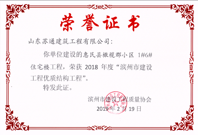 山東蘇通建筑工程有限公司,創(chuàng)建于2009年8月。目前擁有房屋建筑工程施工總承包壹級、市政公用工程施工總承包叁級、水利水電工程施工總承包叁級資質(zhì),同時還具有建筑裝修裝飾工程專業(yè)承包貳級、消防設(shè)施工程專業(yè)承包貳級、鋼結(jié)構(gòu)工程專業(yè)承包叁級、建筑機電安裝工程專業(yè)承包叁級等專業(yè)承包資質(zhì)。 公司總部坐落于山東省濱州市濱城區(qū)黃河十二路877號,現(xiàn)有辦公面積約2000平方米,機構(gòu)設(shè)黨支部工會辦公室、總經(jīng)理辦公室、綜合辦公室、工程管理部、經(jīng)營預(yù)算部、資產(chǎn)財務(wù)部、材料設(shè)備部、運行管理部、法律事務(wù)部等多個職能部門。公司管理體系已經(jīng)通過了GB/T 19001及GB/T 50430質(zhì)量管理體系、GB/T 24001環(huán)境管理體系(EMS)、GB/T 28001職業(yè)健康安全管理體系(OHSMS)等體系的認(rèn)證。 公司承建完工了濱州市建大教師之家、建大清怡苑、香格里拉水岸綠城住宅小區(qū)、雙泰建大城、曲阜崇德公館住宅小區(qū)、北海新區(qū)御景藍(lán)灣住宅小區(qū)、沾化德榮國際華城住宅小區(qū)、惠民橄欖郡住宅小區(qū)等工程項目,目前在建工程項目有:濱州市頤高國際電子商務(wù)產(chǎn)業(yè)園住宅小區(qū)項目、濱州市東盛國際項目、高新區(qū)建大中央華府住宅小區(qū)項目、濱州市融匯新里程住宅小區(qū)項目、濱州市建大秦皇壹號住宅小區(qū)項目、濱州市森林花...
